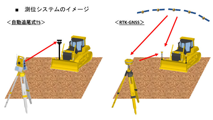 | 雨天、砂埃の発生時などは視準ができない | 基準局に対し複数の移動局が稼働できる |