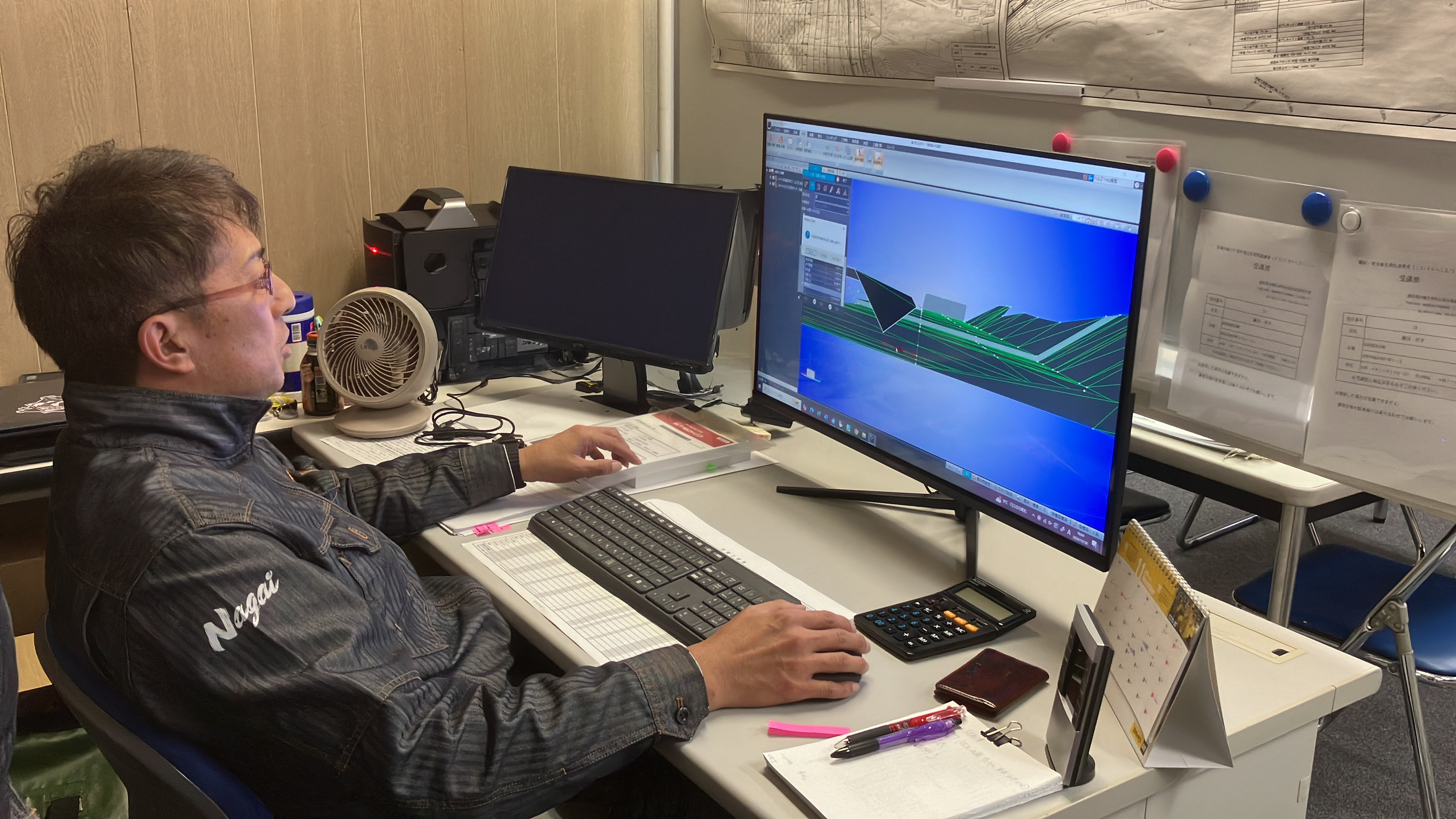 3次元データ作成については、弊社でもデータ作成ソフトウェアを導入しました。ICT施工がどういうものか、何をしないといけないのか、何を準備するのか、というところが分かってくると、私たちが培ってきた感覚がデータに反映されているかということをチェックすることが大切になってきます。
