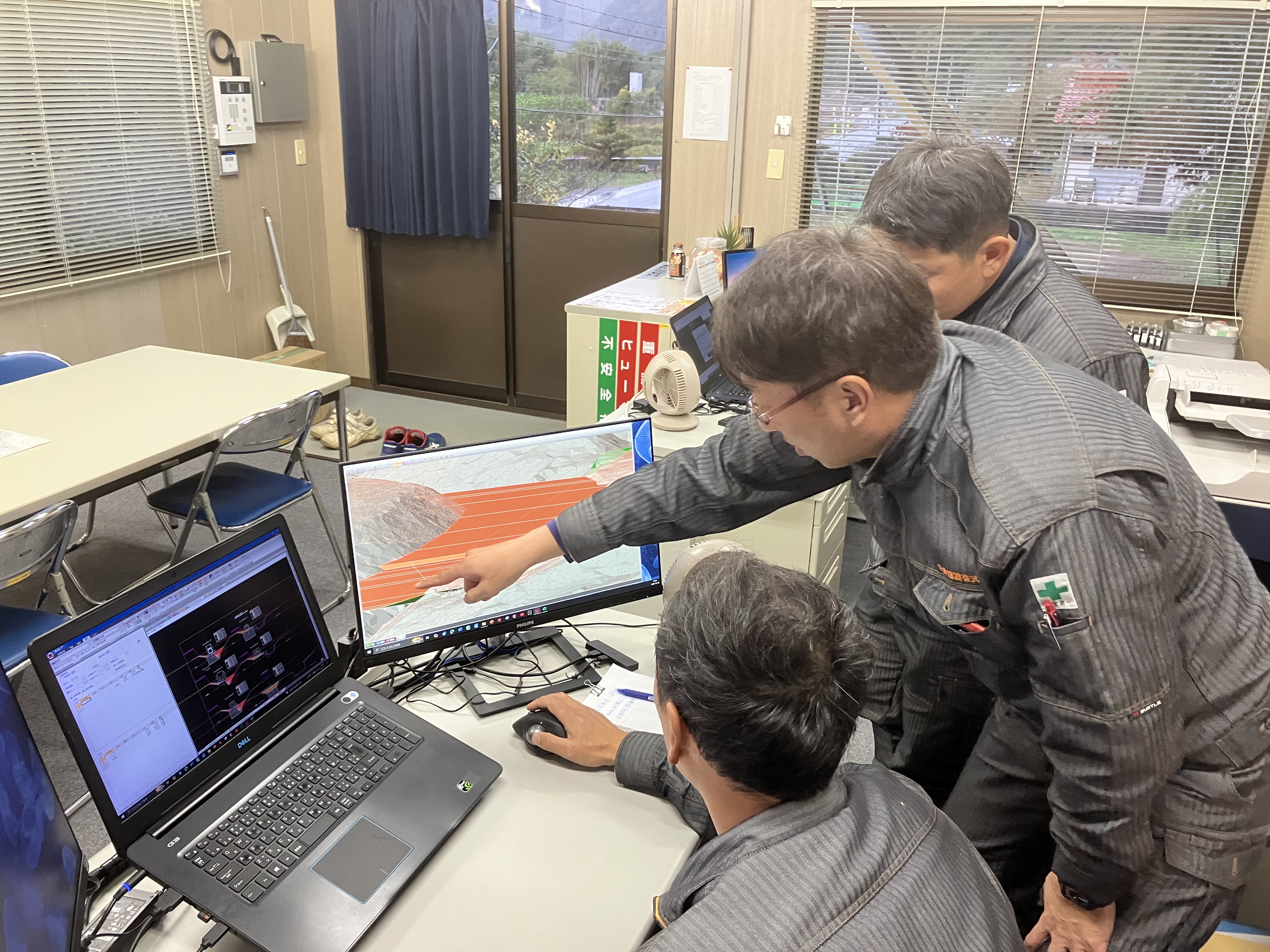 現在進行中の現場(4現場目)では、2現場目で一緒にICT施工を行った者が責任者となっています。このように、ICT施工を理解して責任を持って取り組める社員をもっと増やしていきたいです。