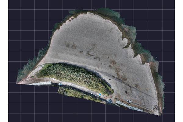 河川掘削工事にてICT活用工事のサポートを実施しました。ICT施工計画立案サポートをはじめ、UAV3次元測量から3次元設計データ作成、ICT建機の施工サポート、3次元出来形管理など一連の施工プロセスのサポートを行いました。当初の3次元計測対象範囲が約6万㎡と広域な範囲であったため、ICTを活用することで現場の作業効率向上にもつながっていました。また3次元データ活用により受発注者間での設計変更などの協議対応にも有効活用されていました。