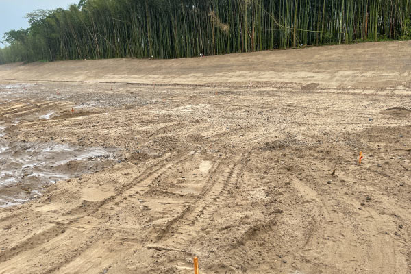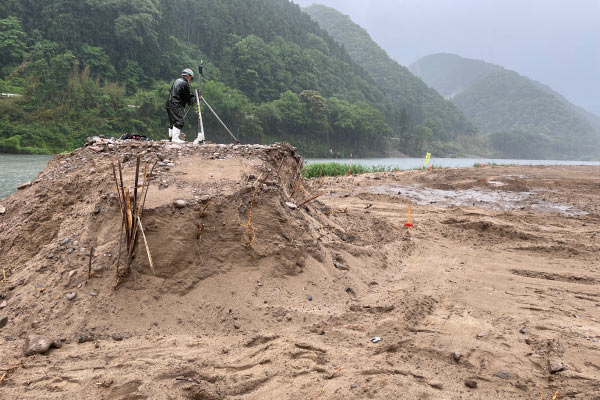 河川の掘削工事にてRTK基地局の移設サポートを実施しました。 工事延長が長くICT掘削範囲が広いため、RTK-GNSS基地局を移設する必要がありました。今後の施工作業を見据えた上で、適切な基地局の設置場所を現場各位とすりあわせながら移設対応を行いました。