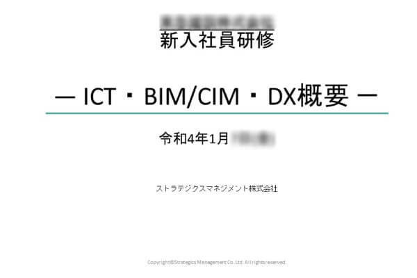 「ICT・BIM/CIM・DX」の用語解説から概念、取り組み概要について、わかりやすくまとめた新入社員向けの研修。