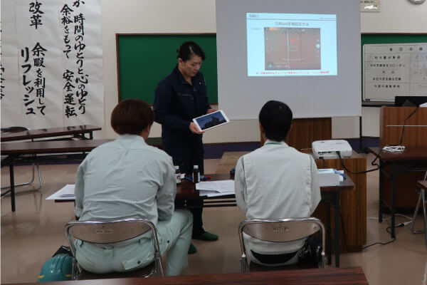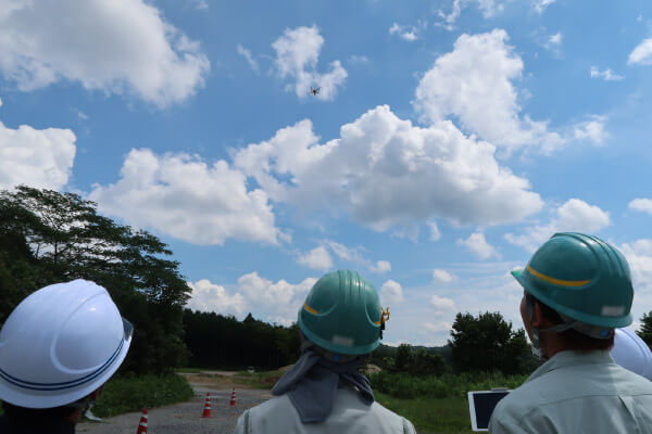 ICTを問わず自社で請け負った建設現場の管理に必要な空撮を行うためのドローン操縦技能を習得する研修。操縦技能以外にも法令、安全管理など知識研修もしっかり行う。