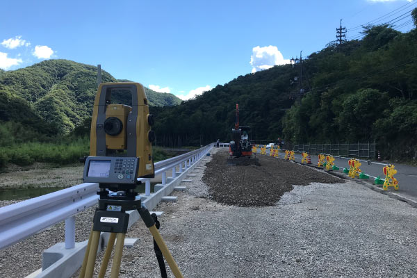 道路拡張工事だったこともあり、常時交通規制を行いながらの現場管理が必要で、ICT建機施工により丁張作業が軽減され、現場の安全性向上の効果は大きかったようです。また、ICT土木とICT舗装工(路盤工)を適用工種に選択し、施工計画の段階から発注者協議の対応フォローや現場見学会のサポートも行いました。
