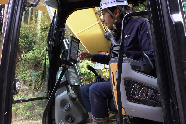 また会社として若手技術者に対してもICT建機による施工を体験する機会などを意識的に作られていました。実現場での実践を通じて着実に会社全体でICT対応を促進されている状況です。