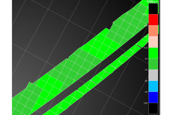 3次元設計データに施工が順調に進み、出来形は高い精度で仕上がり「合格」となっています。