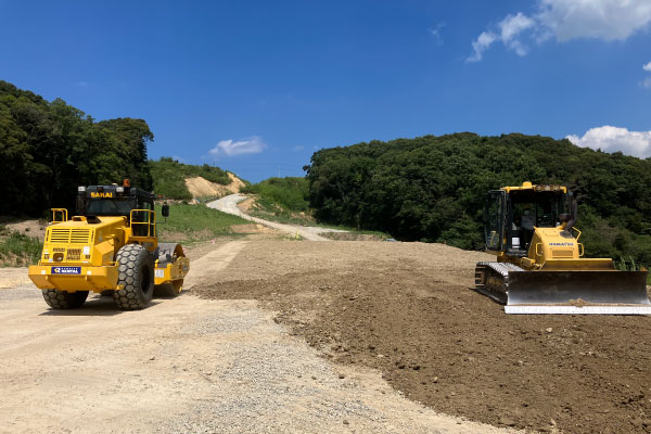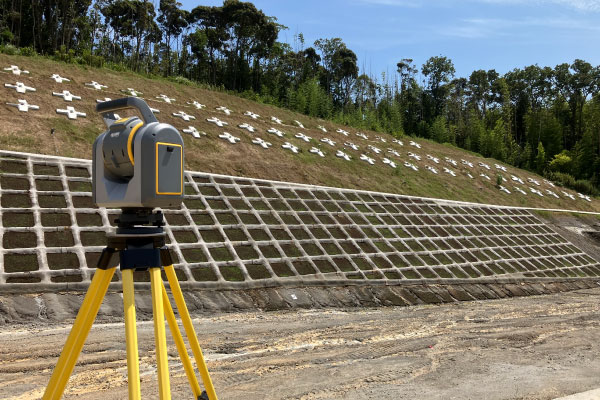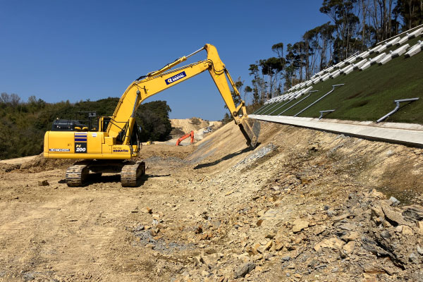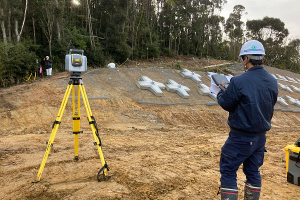 元請建設会社様は、ICT活用工事に積極的に取組んでおられ、ICT土工(掘削工、盛土工)をはじめ、ICT擁壁工、ICT法面工まで多工種でのICTサポートを実施いたしました。
