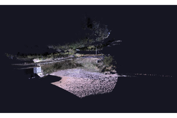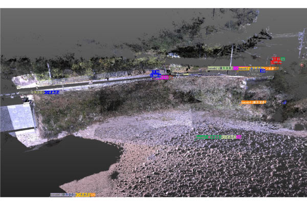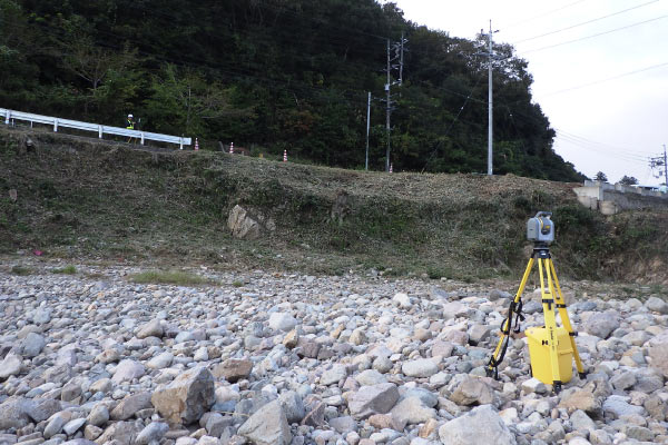 地上型レーザースキャナーにてICT土工のための3次元起工測量を実施。
