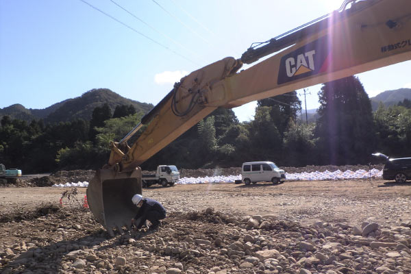 建機メーカー担当者のご協力のもと、ICT建機のキャリブレーションと精度確認試験を実施しました。時間帯によってはGNSS受信状況に変動が見られましたが、施工作業において必要な精度確保は確認することができました。