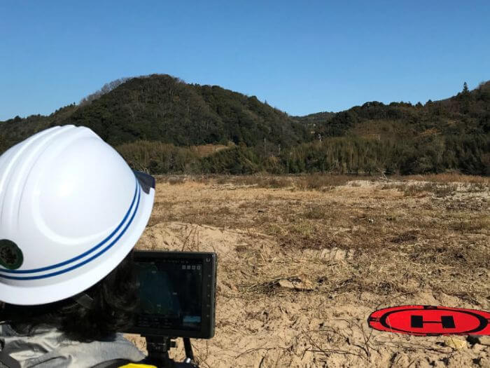 施工対象4万㎡の広域な現場での作業。綿密な飛行計画を行い、合計3ルートの飛行ルートでドローン(UAV)を用いた空中写真測量を実施。