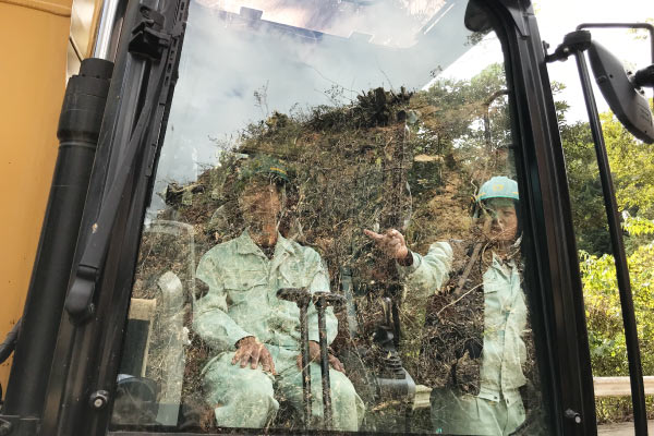 この現場は施工範囲が大きく2か所に分かれており、ICT施工の対象範囲ではGNSS受信状況は想定通りでした。施工計画の段階から、現場監督をはじめとした施工関係者と密に打ち合わせを重ねたことで、段取り通りに工程を進めることができました。現場ではICT施工経験豊富な先輩から後輩へICT建機の扱い方について指導する光景も見られました。