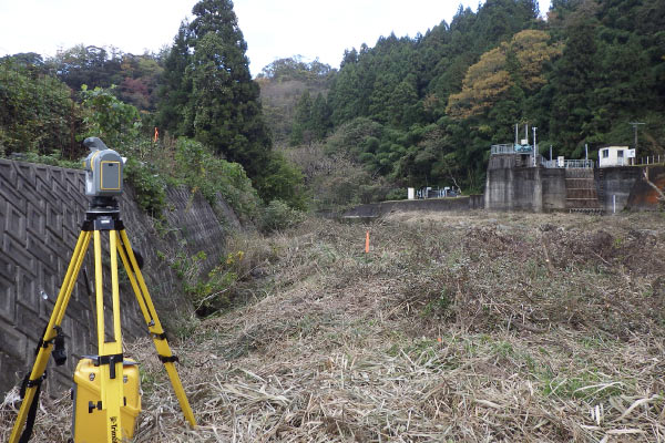 県発注工事(ICT活用工事外)にて地上型レーザースキャナー3次元起工測量を実施。