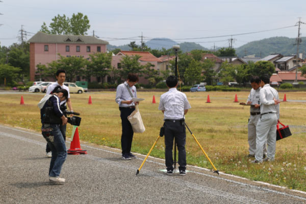 日本初の公道レース開催に向けて、警察や道路管理者との協議に必要なコースの安全を証明するため、UAVによる空中写真測量を行いました。島根県松江工業高等専門学校の先生方のご協力のもと、予定コースがある市街地全体を点群化し現況の可視化を行いました。