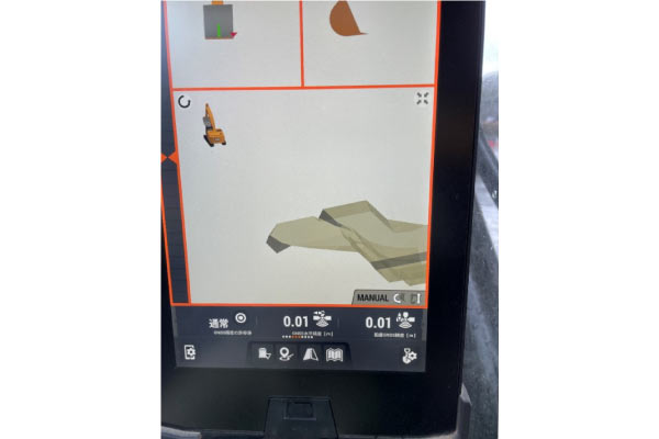 作業土工用にICT建機(バックホウ)に施工用の3次元設計データを設定。
