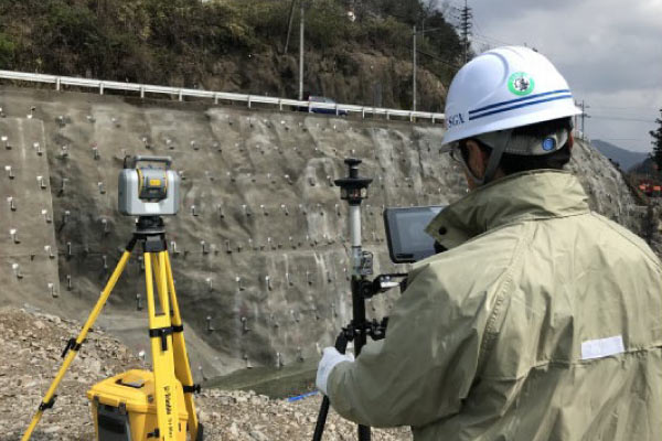 アンカー工のICT出来形管理を実施。出来形管理要領にはまだ定めがない独自の取組み。