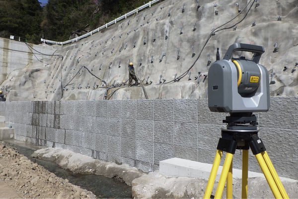 PCWパネル設置工のICT出来形管理を実施。出来形管理要領にはまだ定めがない独自の取組み。