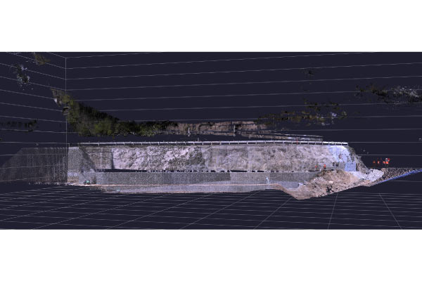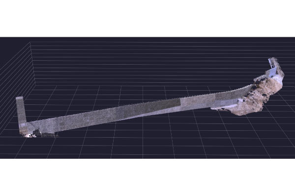 特殊工法の「PCWパネル設置工」では、一日に高さ1mずつのペースで施工が進みます。河川復旧が可能な高さを超えたタイミングで、2回目の出来形測量を行いました。 複数回に分けて3次元計測を行う場合、点群データを統合することで施工範囲全体の出来形管理が可能です。ICT技術の活用によって河川の早期復旧が可能になり、現場の予算管理でも効果が得られています。
