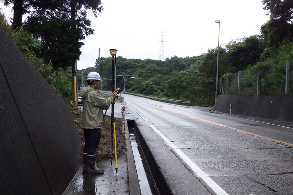ローカライゼーションを実施するにあたり、工事用基準点を事前に設置いただき、作業を実施しました。測位システムはVRS方式(ネットワーク型RTK-GNSS測位)を選択。 ICT建機による施工時のGNSS受信精度によっては、RTK-GNSS基地局を追加設置も想定して段取りを行いました。